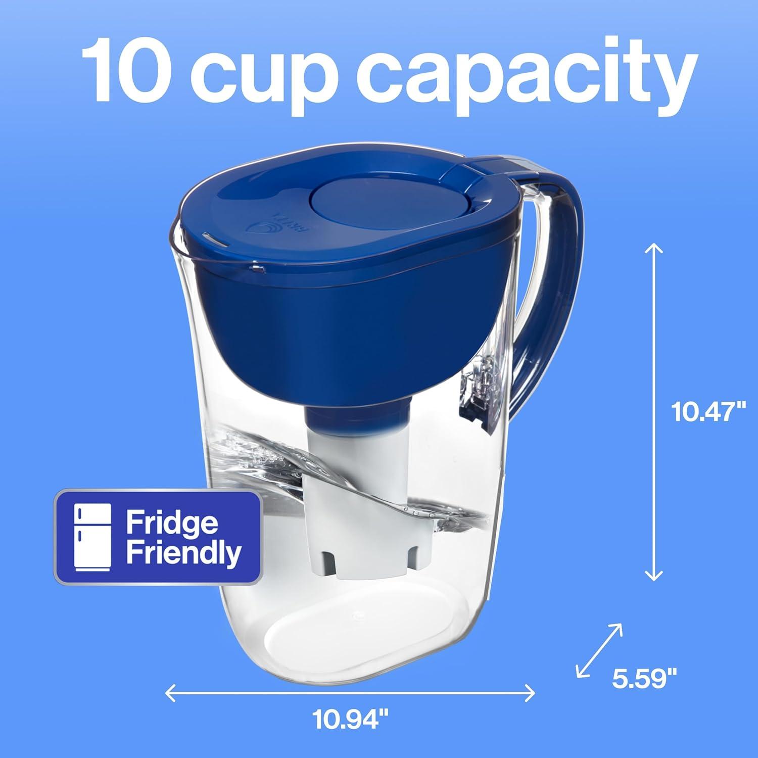 Drink great tasting tap water with this Brita 6 cup water pitcher, made without BPA, and the included BritaPlus Water Filter that traps 2X more contaminants*. This high density replacement filter uses activated carbon to reduce chlorine (taste and odor), copper, cadmium and more**. From the number one brand in water filtration***, this filter replacement lasts 2 months**** and saves $240 a year*****. Ditch single use plastic bottles with this refillable system that replaces up to 300 plastic bottles******. The SmartLight filter indicator is Brita's most accurate filter life indicator. *Vs standard Brita filters. See certifications. **See certifications. Substances reduced may not be in all users’ water. ***Based on IRI sales data. ****Approximate timing based on 40 gallon filter life and average family usage of 11 glasses per day. *****Vs. standard 16.9 fl oz single use bottles. Savings assumes pre purchase of Brita system. ******Standard 16.9 fl oz single-use bottles.