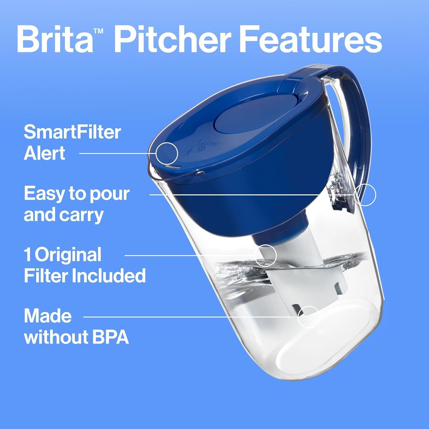 Brita Small 6 Cup Water Filter Pitcher, 1 BritaPlus Filter, Metro, Clear (Package May Vary)(Blue)